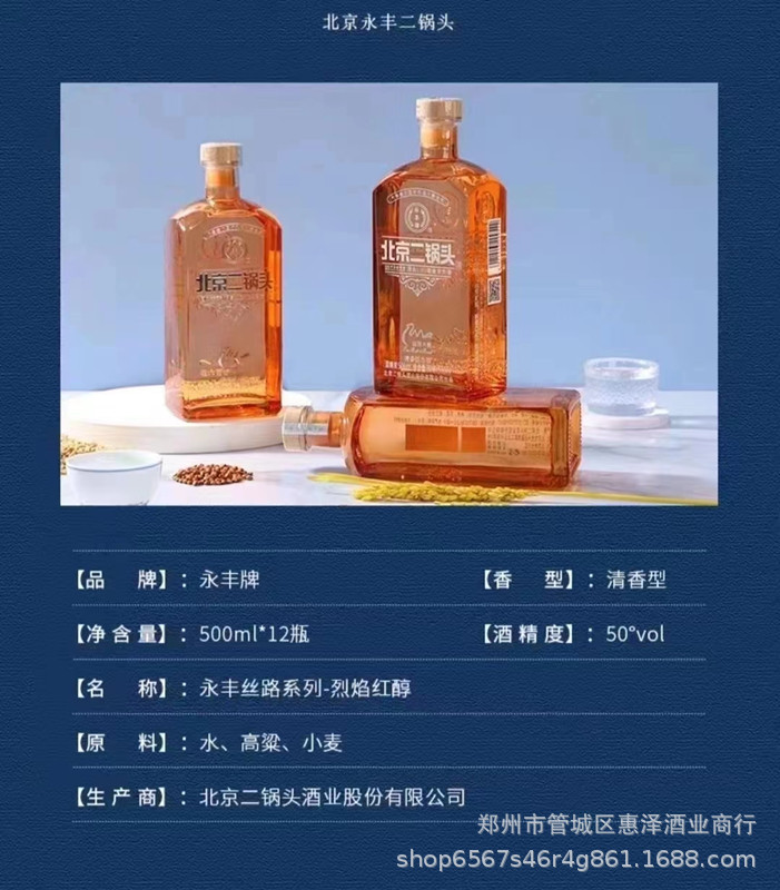 批发42度永丰牌北京二锅头清香型白酒 500ml纯粮白瓶