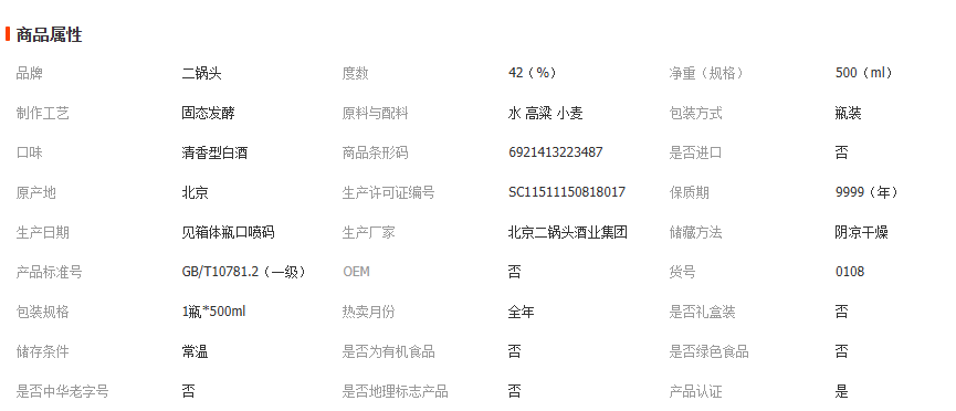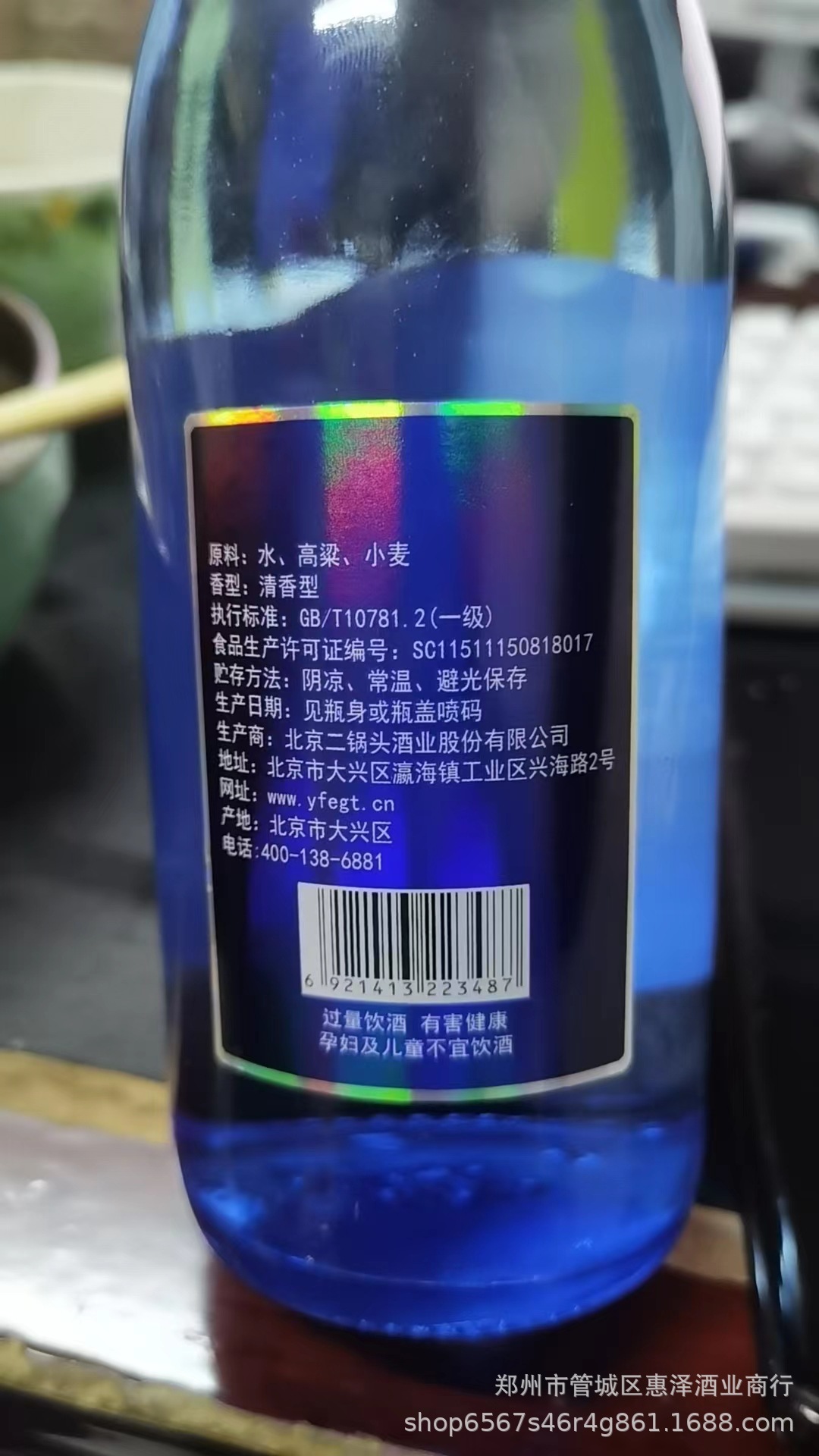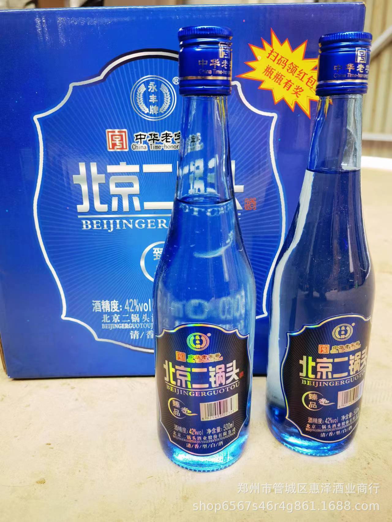 42度蓝瓶北京二锅头永丰牌臻品清香型纯粮酒500ml