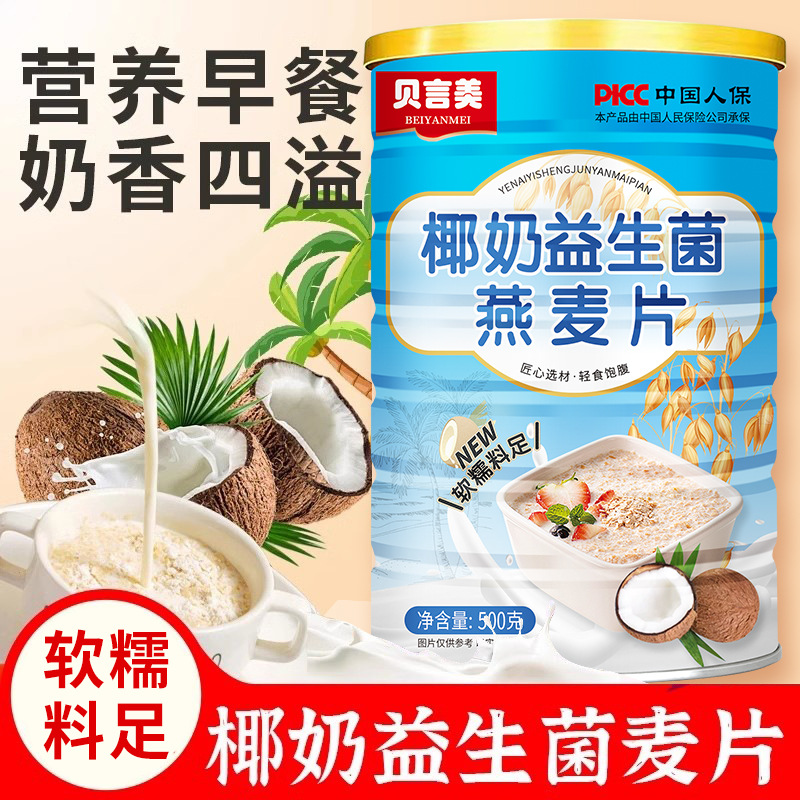 现货代发椰奶益生菌燕麦片500克罐装早餐代餐饱腹速溶麦片源头厂