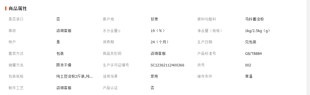 甘肃定西纯土豆淀粉马铃薯淀粉烘焙水晶饺子皮勾芡汁食用生粉
