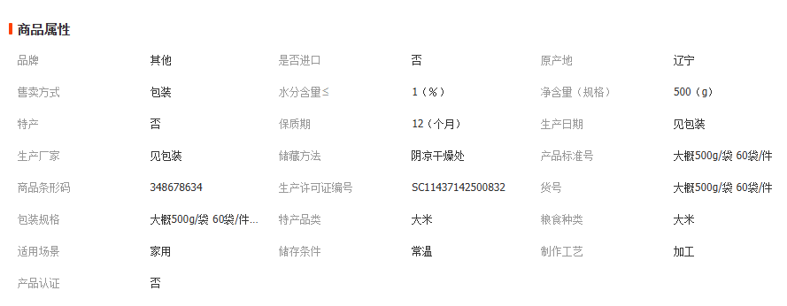 规格 大概500g/袋 60袋/件