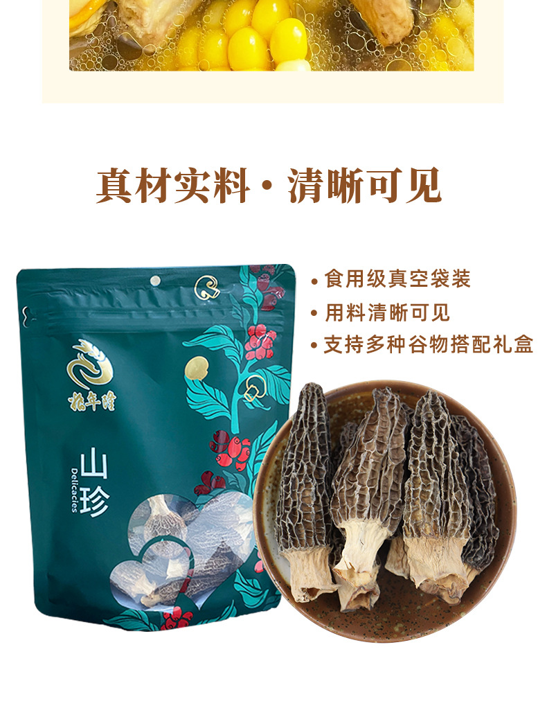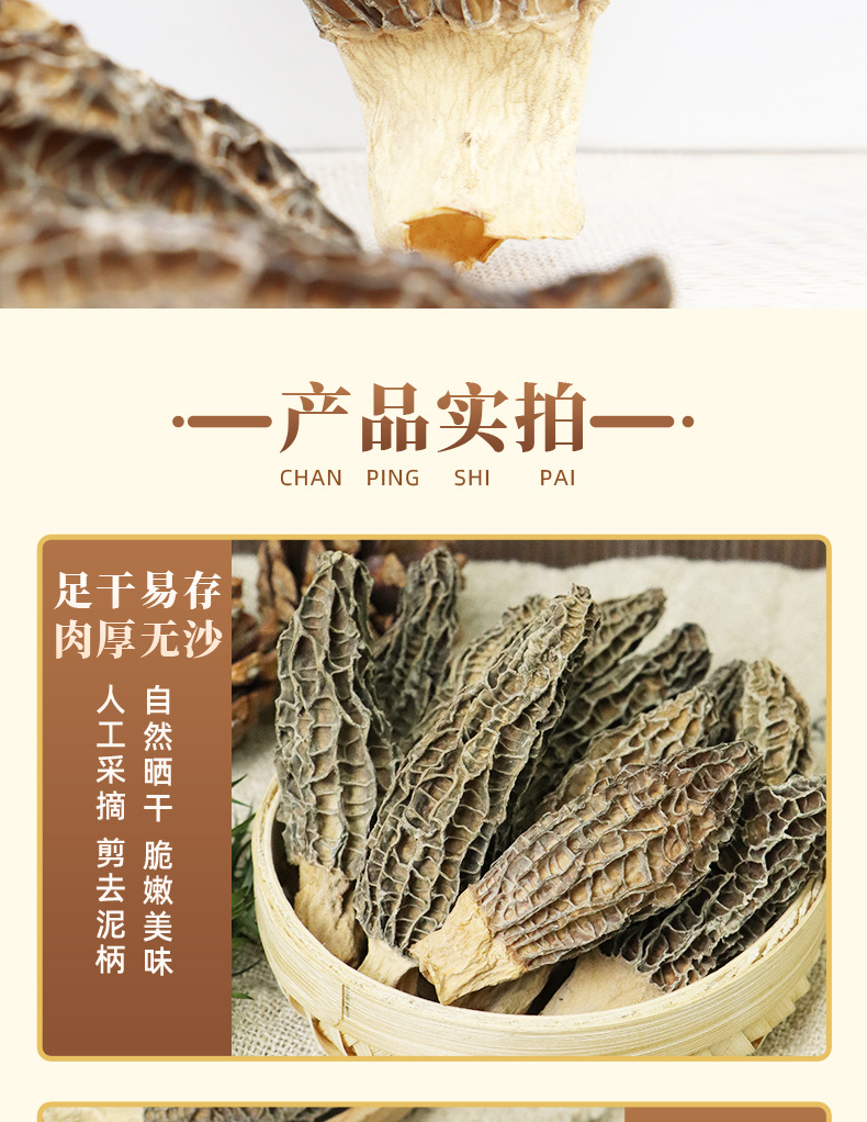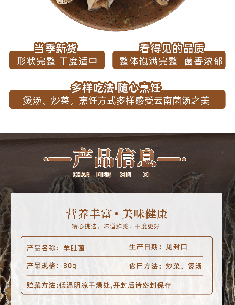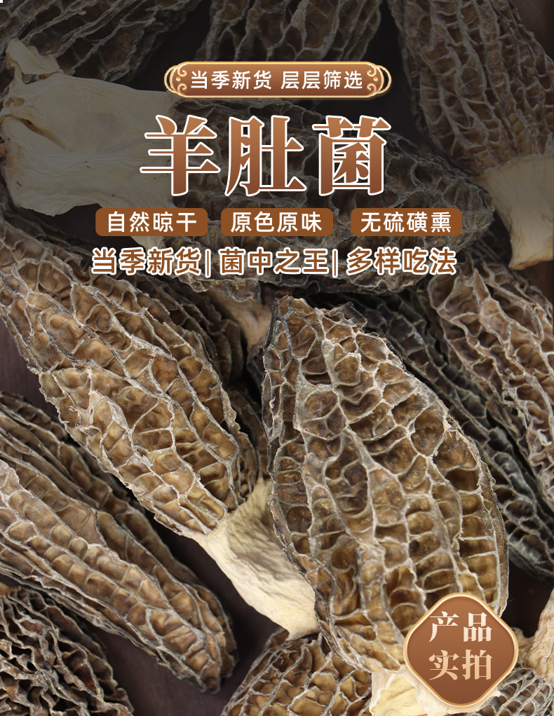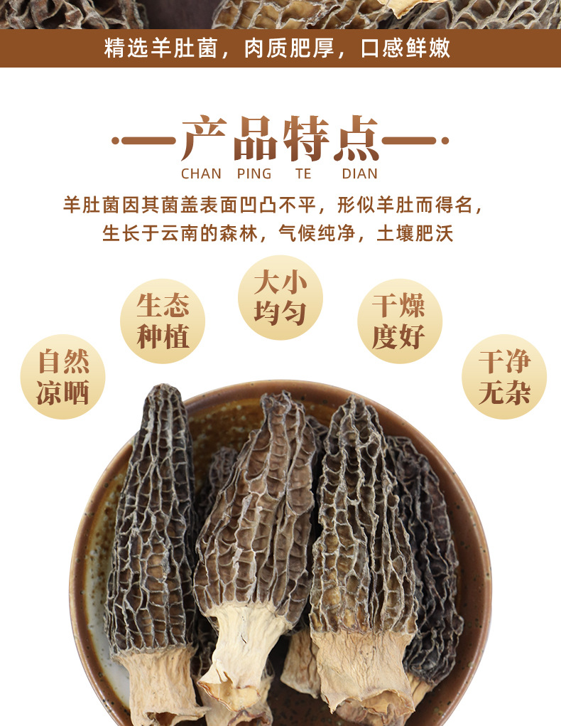 云南野生羊肚菌袋装煲汤食材细纹无沙头茬剪柄菌菇汤料包干货批发