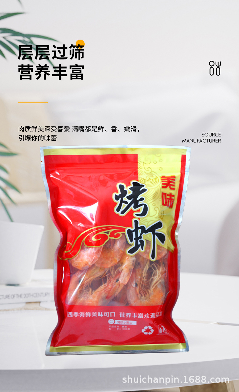 烤虾 即食海鲜干货干活大号虾干 网红休闲零食宝宝补钙 烤虾干