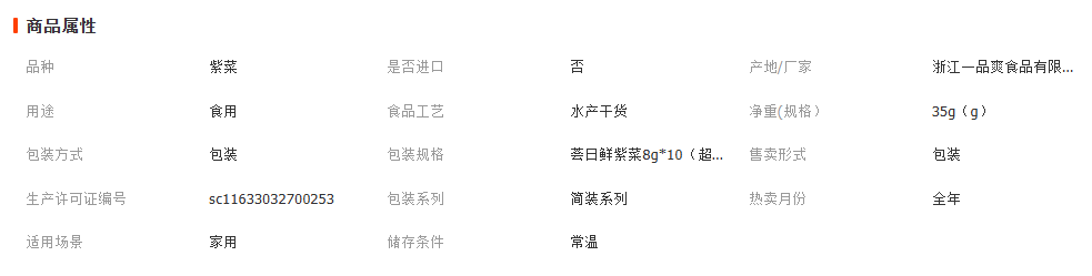 一品爽工厂紫菜之乡水产干货海产食材紫菜汤海藻冲泡头水有机