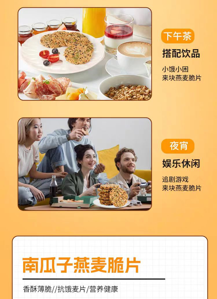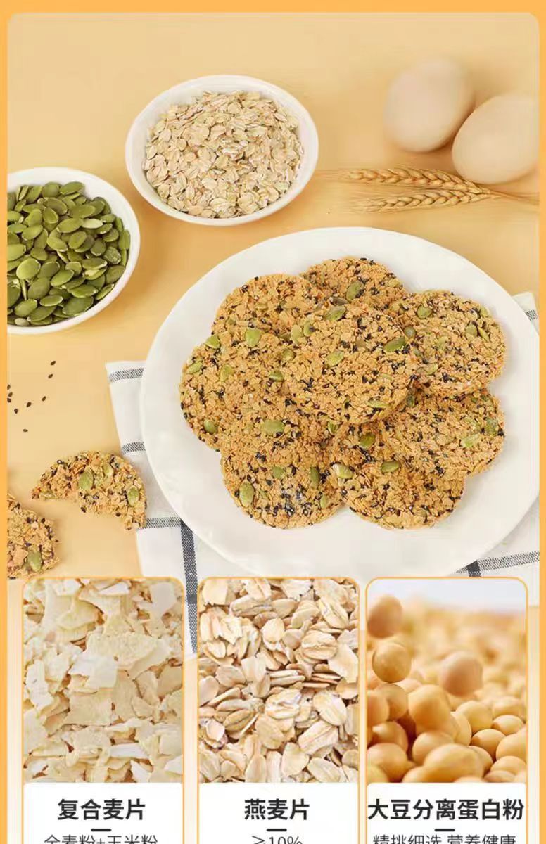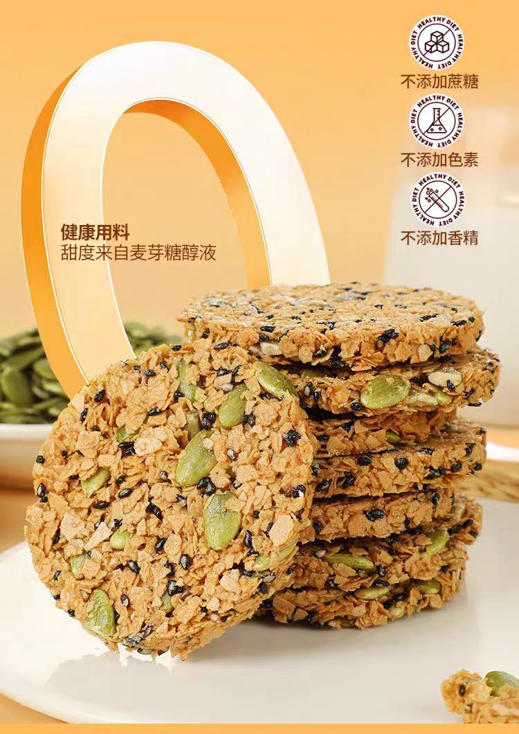 坚果南瓜子燕麦饼干纯燕麦脆片饼早餐代餐0添加糖精谷物健身健康
