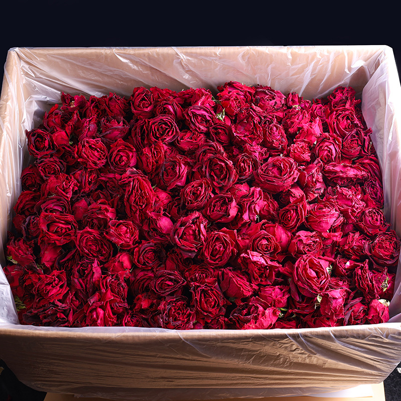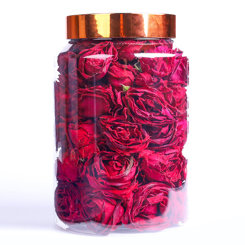 云南有机墨红玫瑰花茶大朵冻干无硫熏罐装整朵泡茶食用干玫瑰花茶