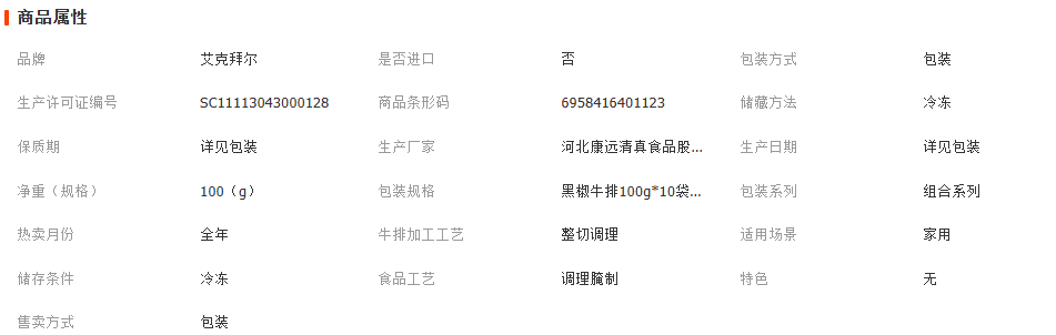 艾克拜尔黑椒牛排袋装150g*10片 菲力家庭牛扒送酱包秘制鲜切整切
