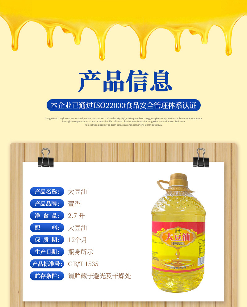 萱香非转基因大豆油2.7升食用植物油家用烹饪炒菜大桶厂家批发