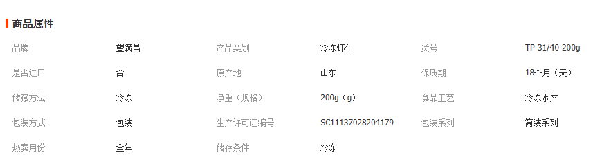 商品描述 原汁虾仁,剥虾去线冷冻,每小盒虾仁净含量200g。 虾仁解冻会有自然水分流失。 虾仁颜色会也不会太统一。 顺丰冷链发货,天气炎热时,会有缓化现象,属于自然现象。 加工厂直发,有需要代工的可以直接联系我们。
