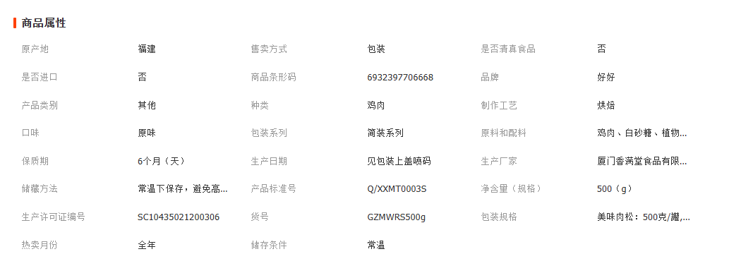 好好牌 厦门特产肉粉松500g罐装 线上线下爆品