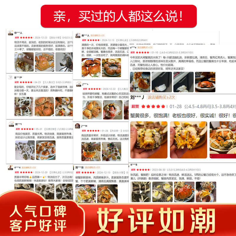 螃蟹鲜活大闸蟹苏州精品公3.5两母2.5两10只装水产螃蟹鲜活大闸蟹