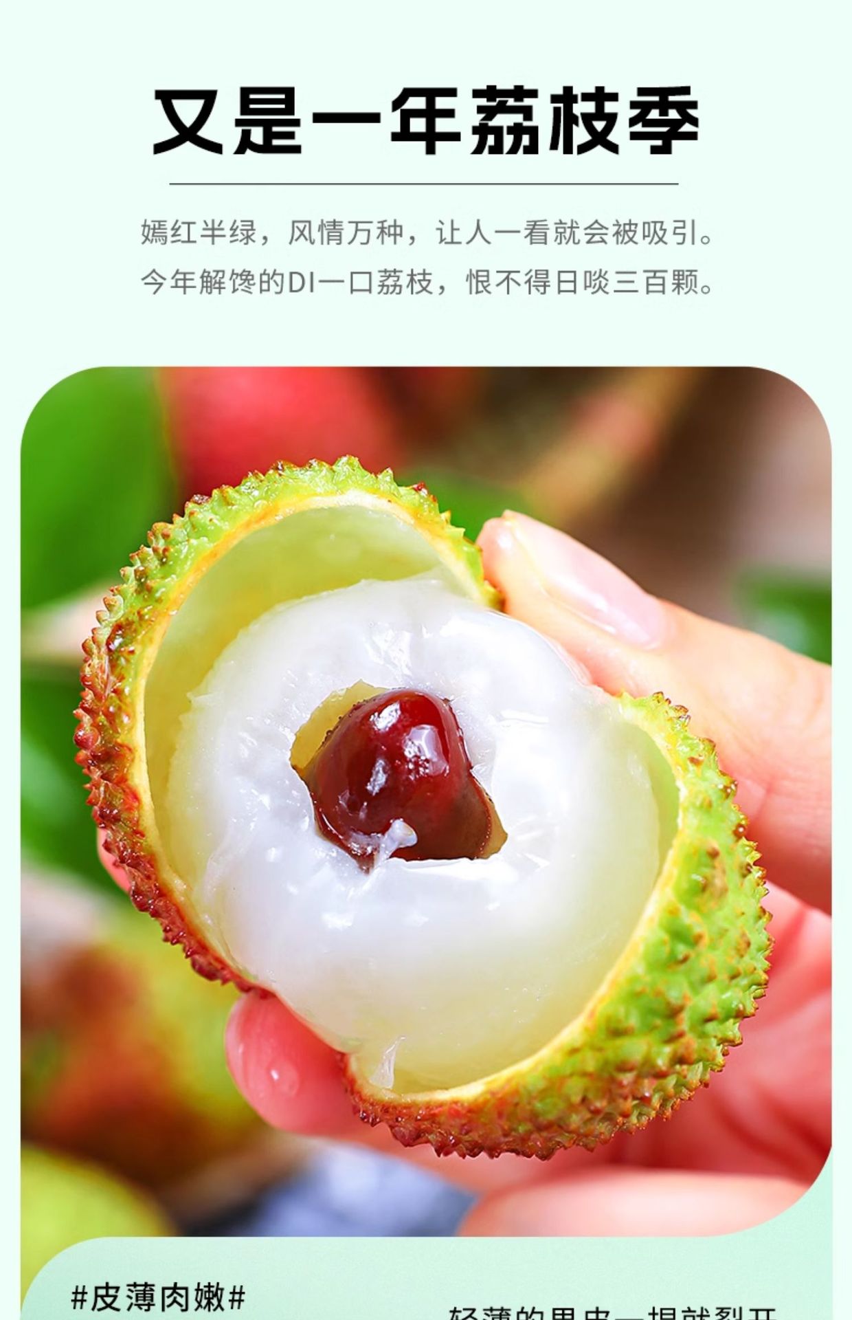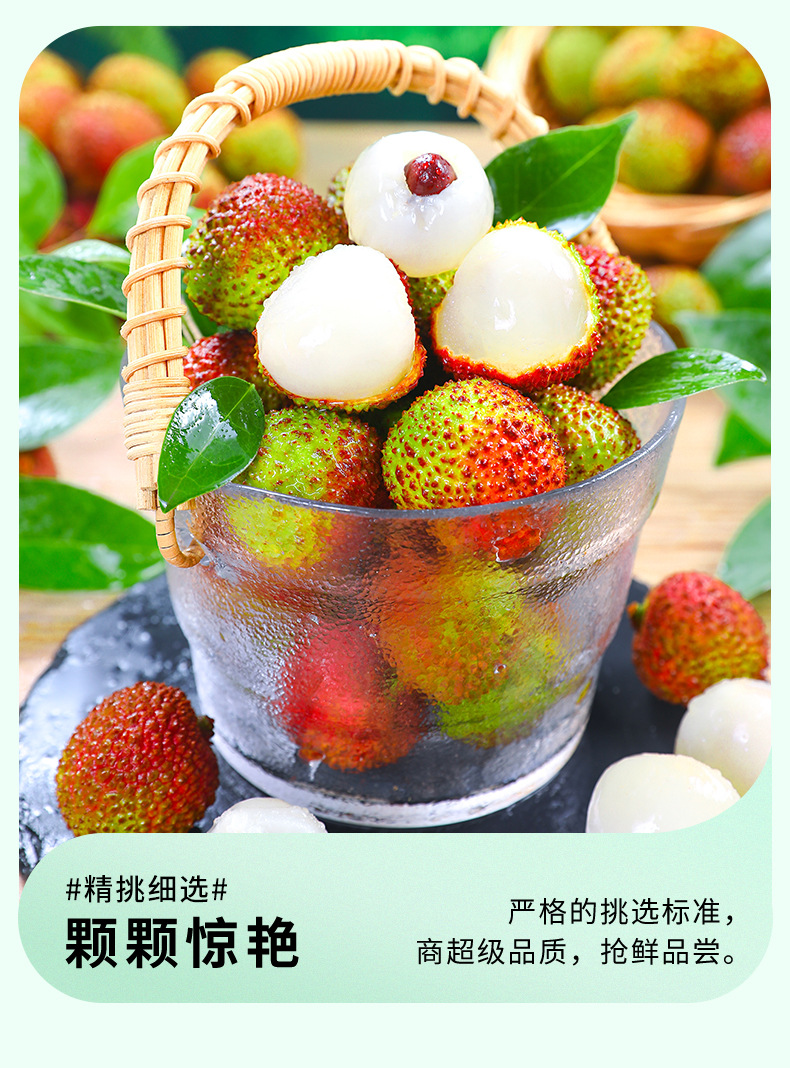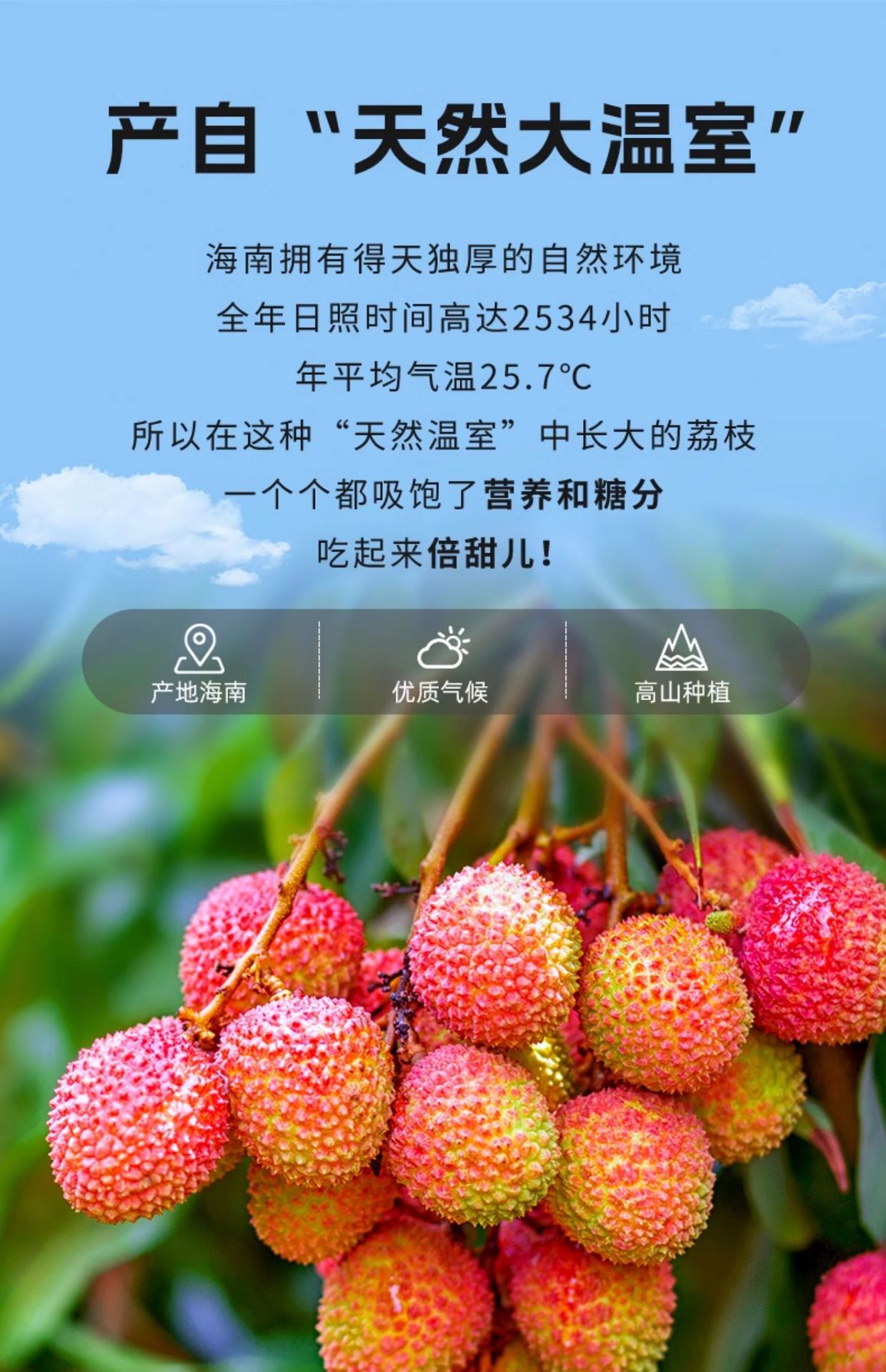 海南妃子笑冰冻荔枝5斤水果当季整箱包邮王白糖现摘桂婴荔枝肉3味