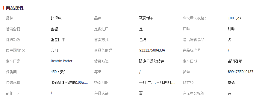 品名:比得兔威化卷心酥100g罐装 蛋卷甜点心饼干