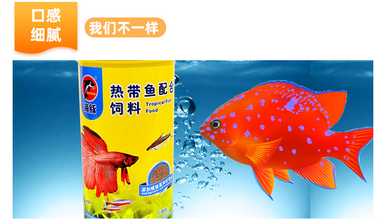 海豚热带鱼粮开口粮孔雀鱼观赏鱼通用鱼食微粒小型热带鱼配合饲料