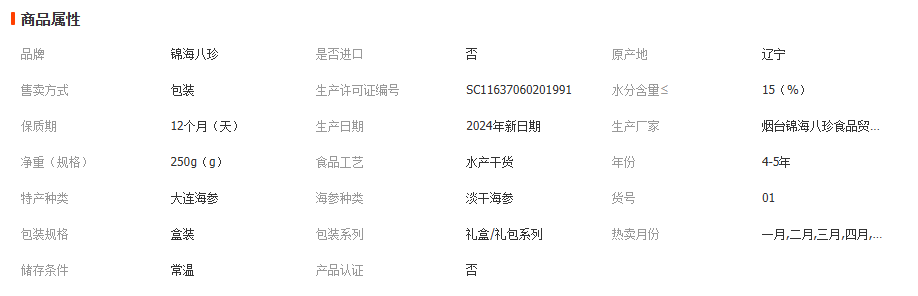主营: 水产礼盒类 水产干货类 海参