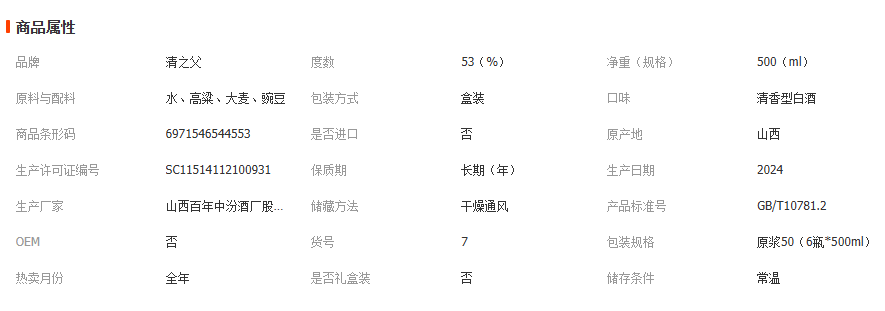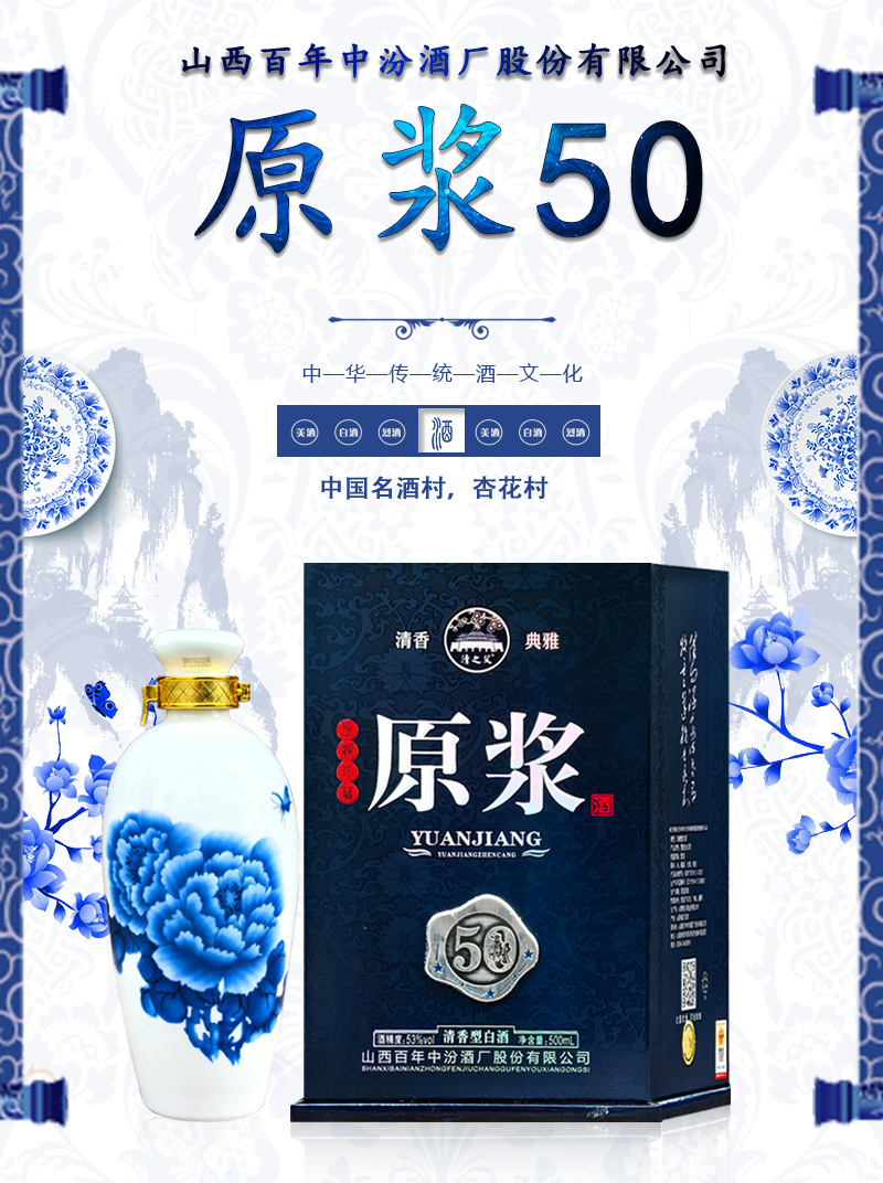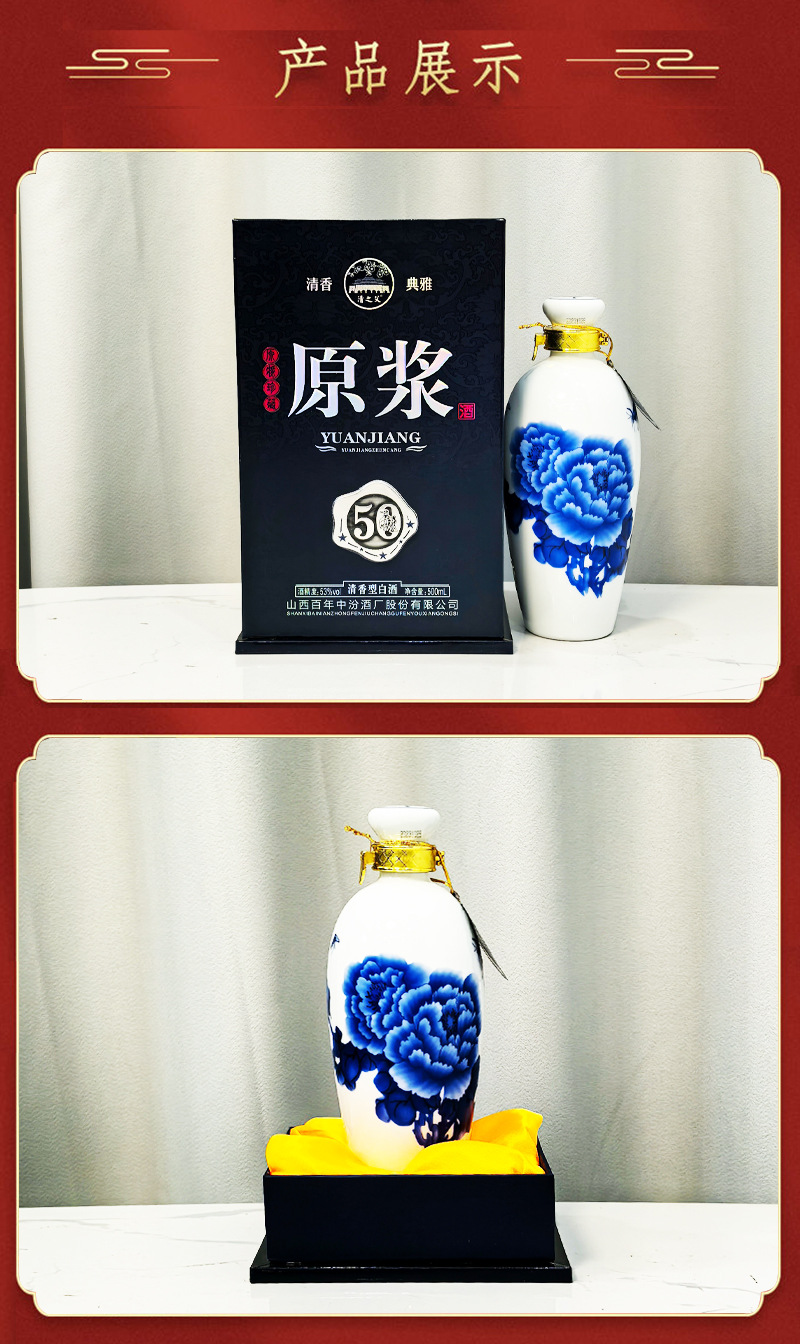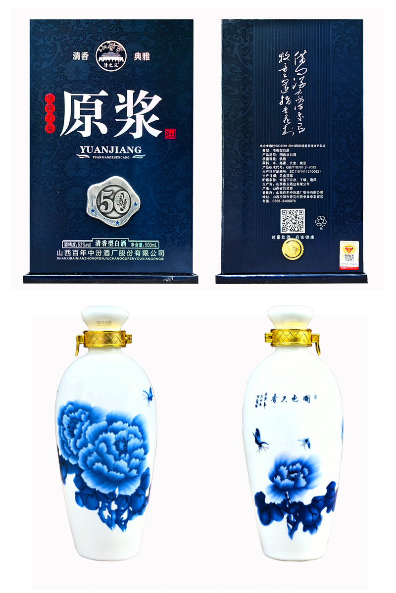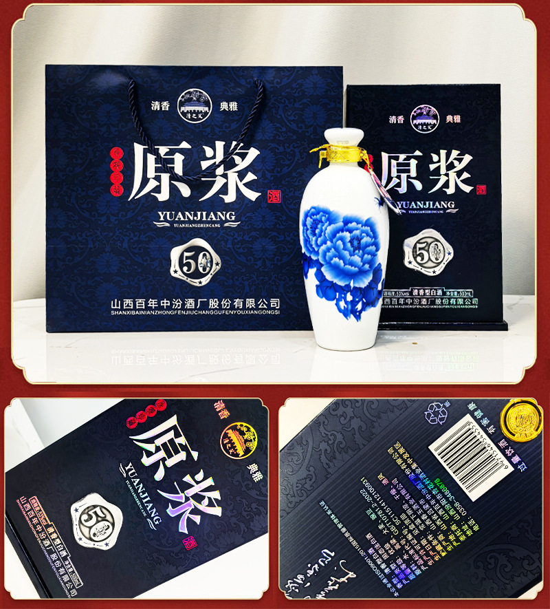清花原浆60礼盒53度清香型白酒批发杏花村产地纯粮固态整箱六瓶