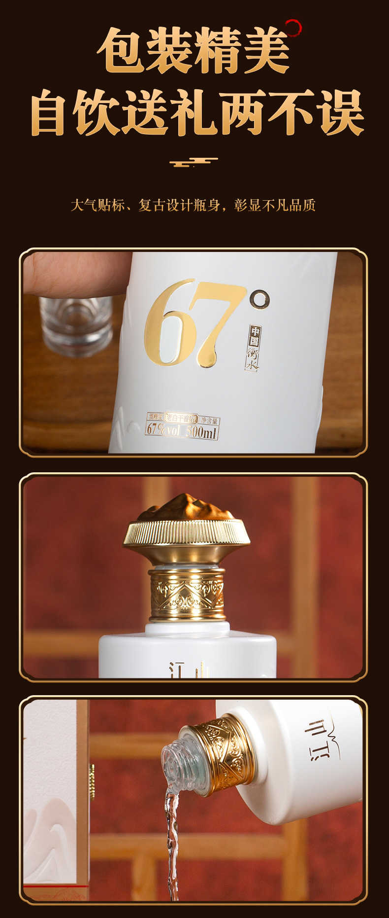 67度礼盒装老白干香型酒宴请礼品纯粮高度白酒500ml固态法白酒