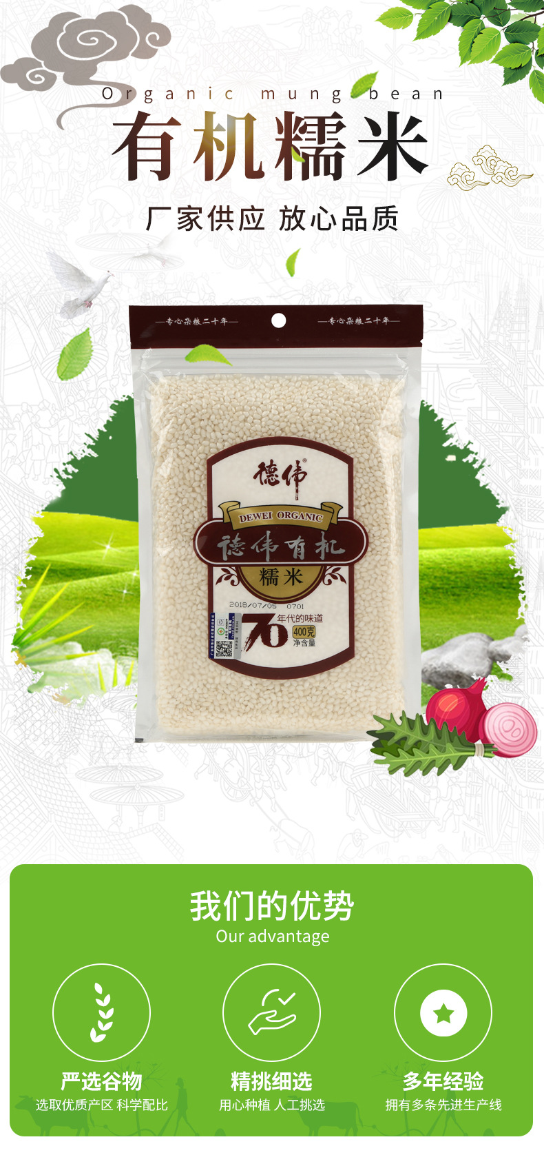 德伟东北有机糯米五谷杂粮圆粒糯米400g真空包装江米包粽子粘糯米