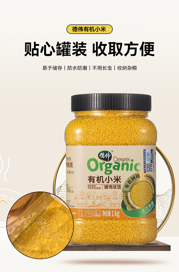 德伟有机小米1kg农家香糯小米五谷杂粮东北黑土地黄金小米粥批发