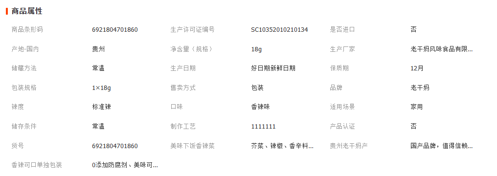 贵阳南明老干妈香辣菜18克袋装调味香辣菜可炒菜即食下饭早餐必备