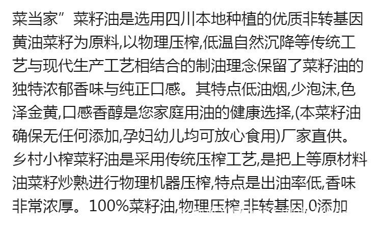 菜当家四川菜籽油农家自榨非转基因食用油正宗新菜油纯菜油
