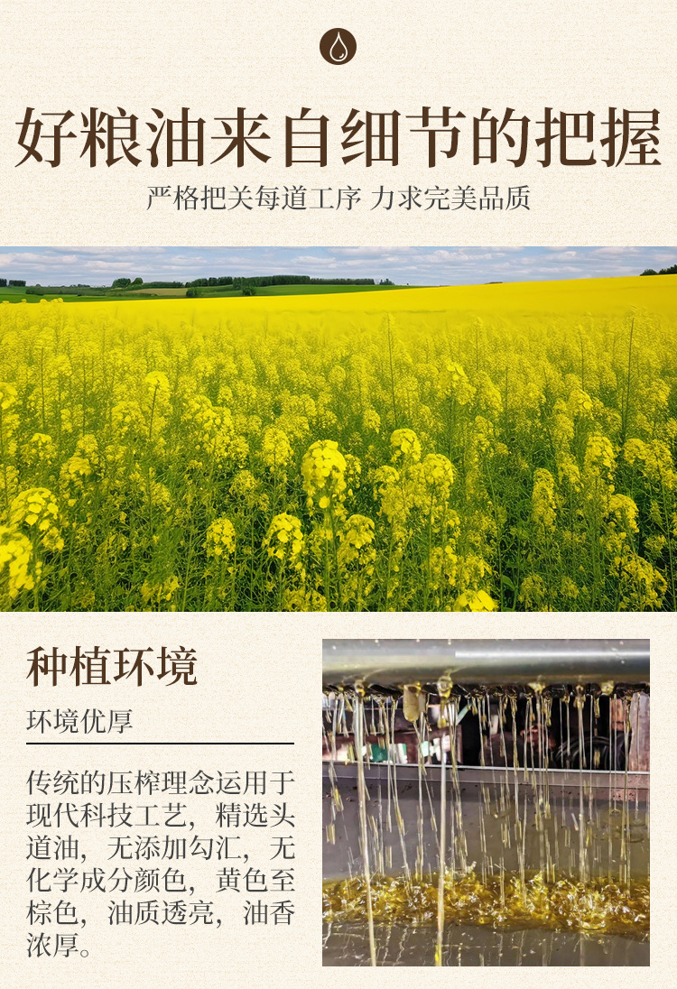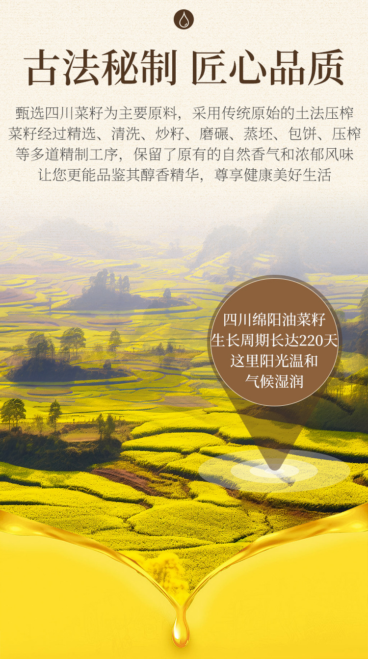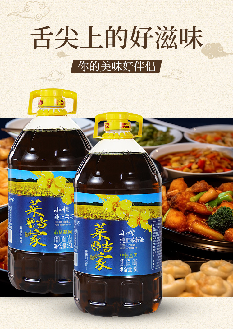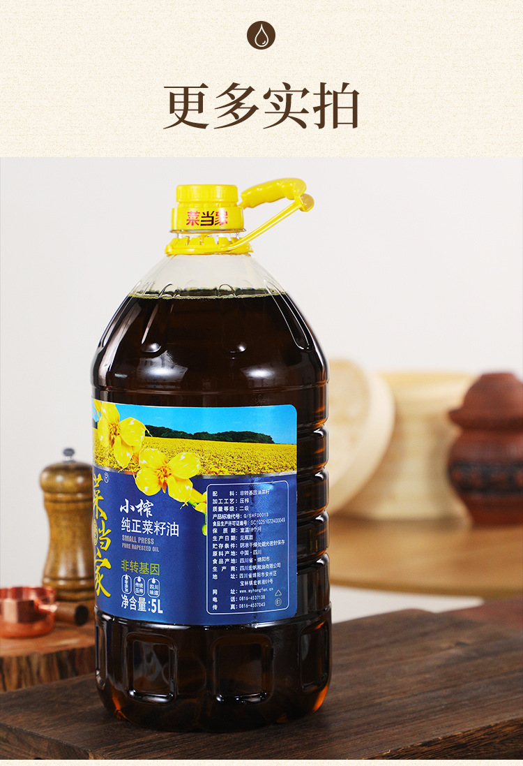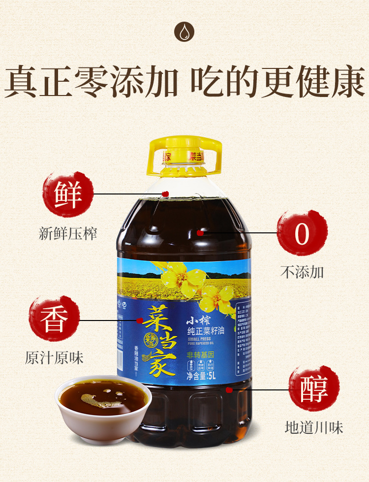 菜当家纯正四川菜籽油5L压榨菜油农家自榨非转基因纯菜籽油食用油