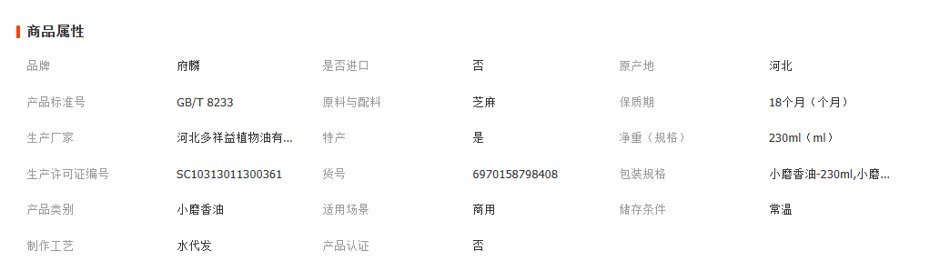 府麟小磨香油芝麻油纯正宗芝麻香油商用凉拌家用麻油230ml芝麻油