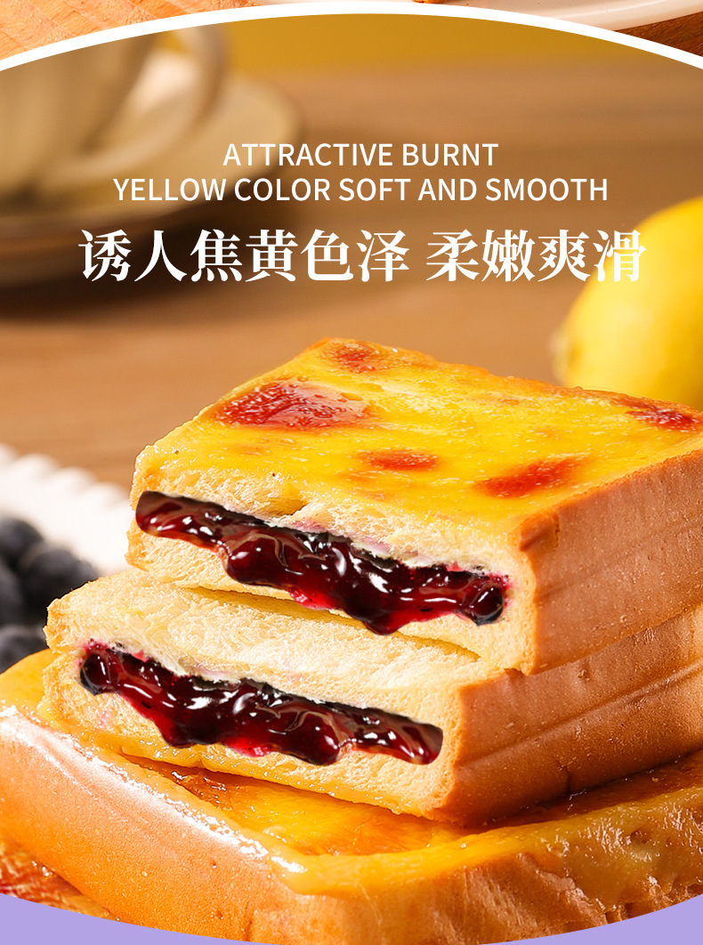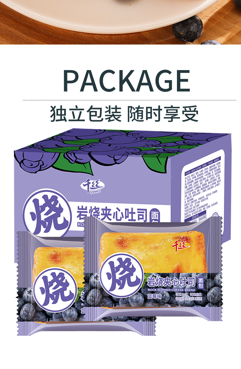 蓝莓岩烧乳酪夹心吐司面包整箱早餐健康零食小吃休闲食品速食蛋糕