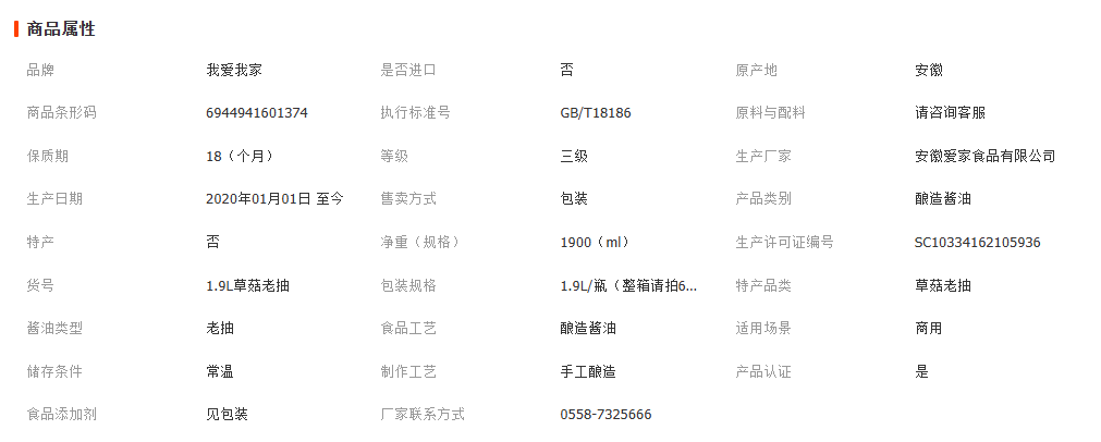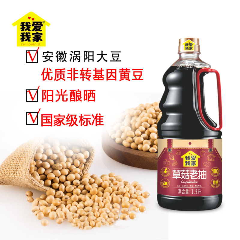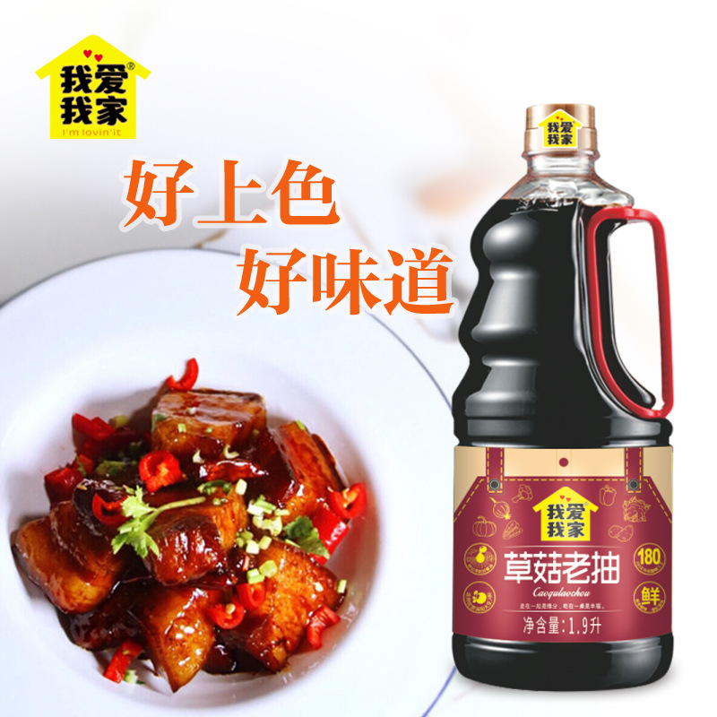 爱家调味品草菇老抽1900ml/桶酿造酱油家用桶装炒菜红烧上色焖煮