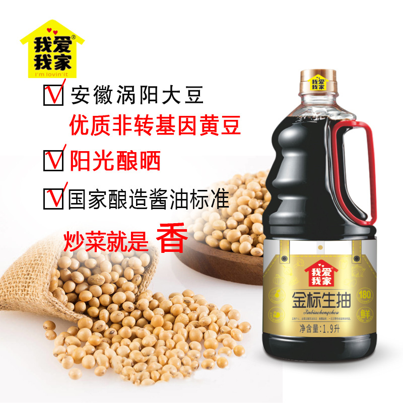 爱家金标生抽1900ml酿造酱油大桶装上色提鲜拌面蘸料凉菜火锅调料