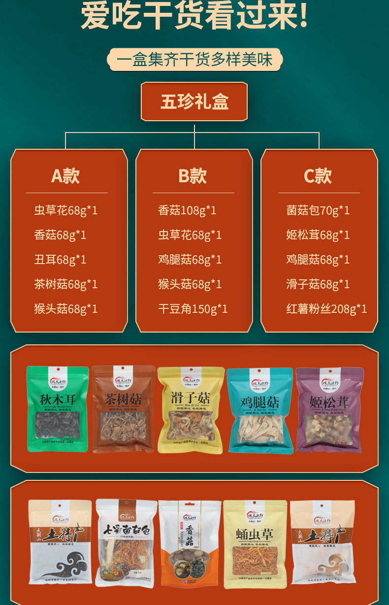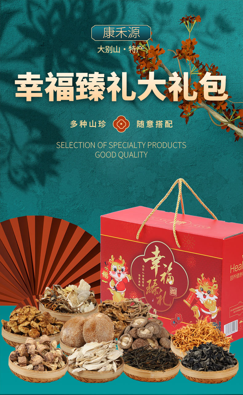 干货礼盒菌菇山珍四拼礼盒松茸羊肚菌汤包年货送礼中秋福利礼品
