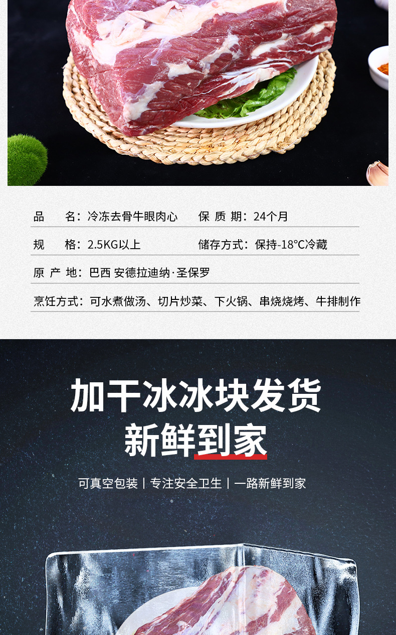 巴西385JBS眼肉心肋眼牛排轻食西餐厅街头牛排原切健身口粮牛排