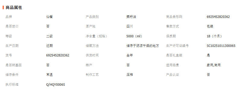 整箱四川仙餐非转基因特黄浓香5升菜籽油食用油批犮5l