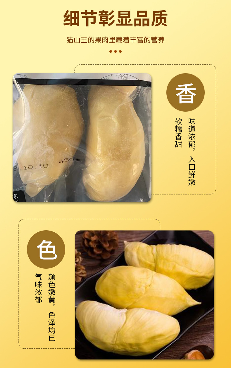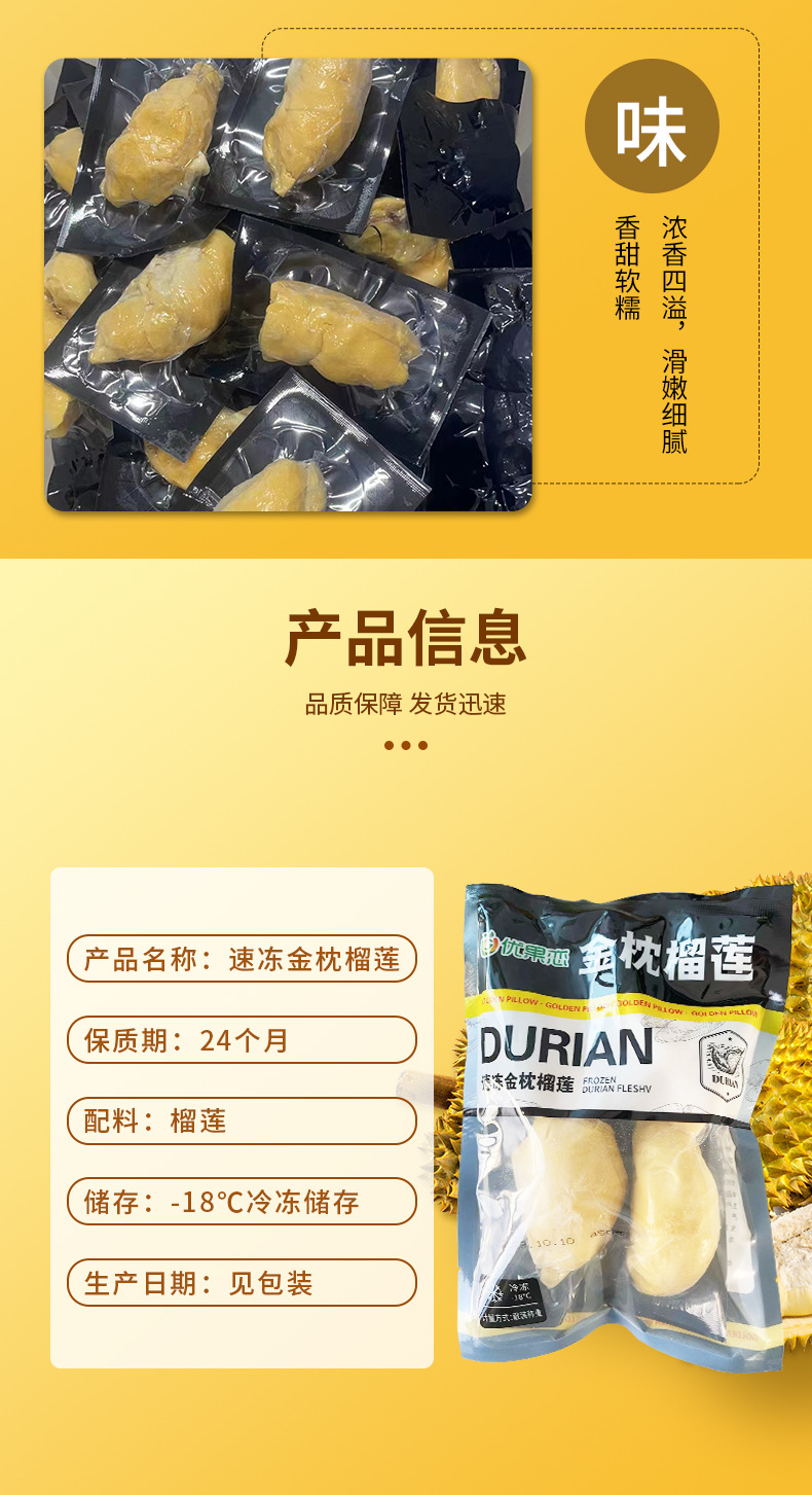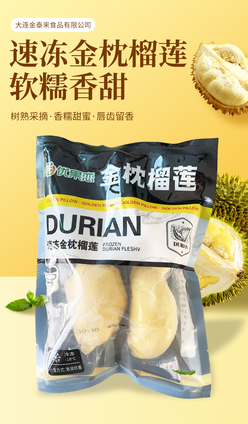 金枕优黑450g速冻金枕榴莲软糯香甜味道浓郁入口鲜嫩颜色嫩黄直供