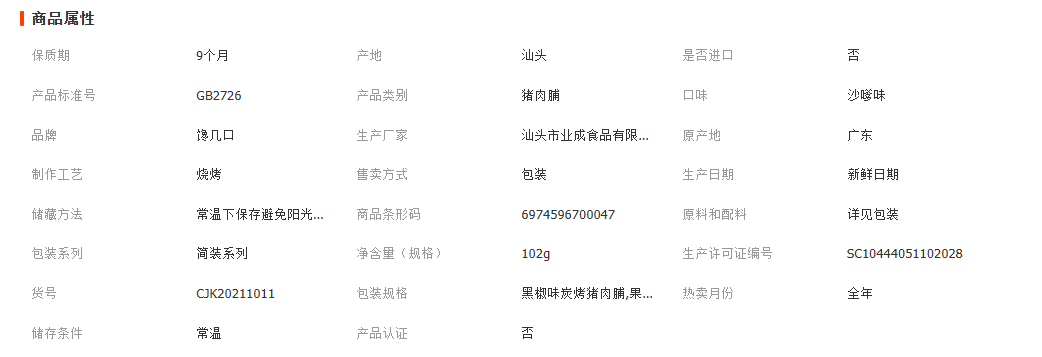 主营产品或服务: 休闲零食; 猪肉脯; 牛肉丸