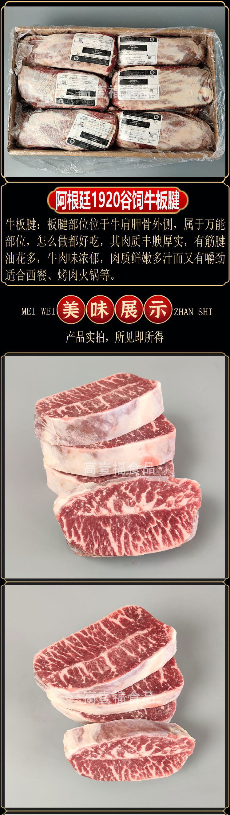 阿根廷1920厂牛板腱谷饲原切雪花牛排西餐烤肉家庭牡蛎肉健身牛肉