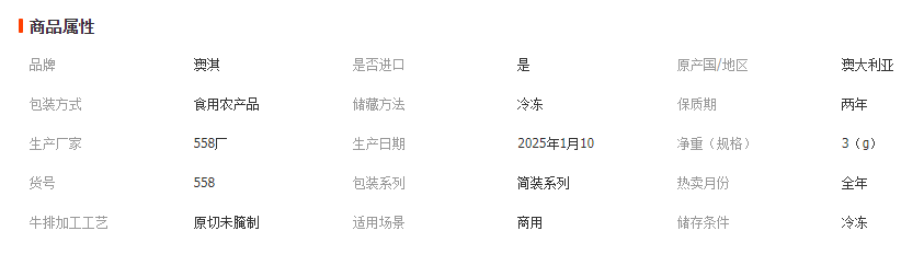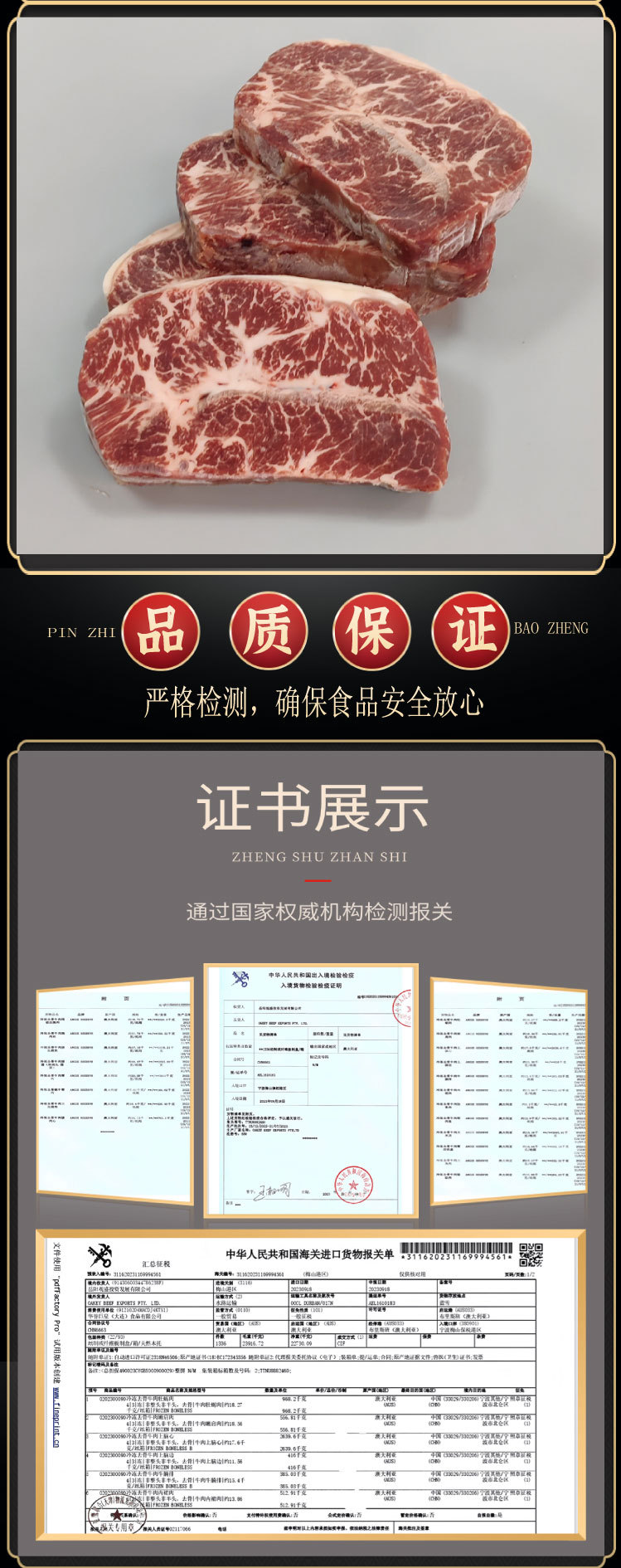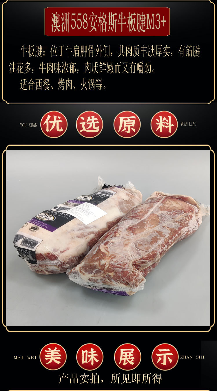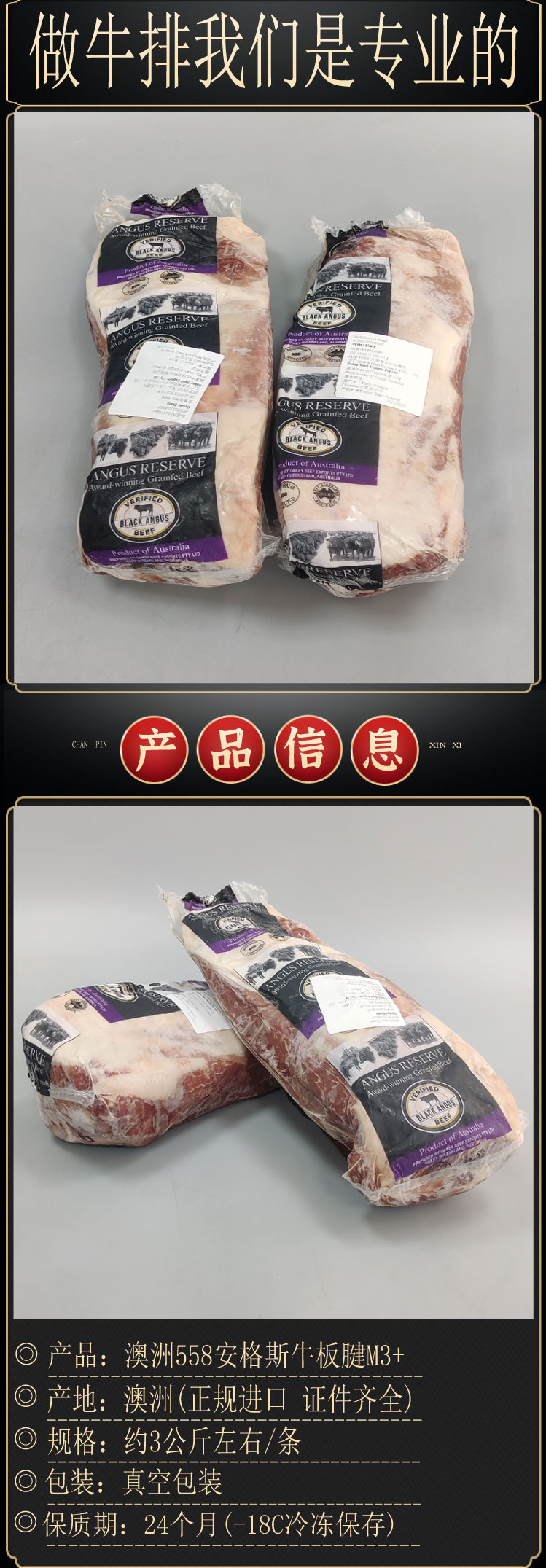 澳洲558厂安格斯牛板腱M3谷饲300天雪花原切牛排整切健身口粮牛肉