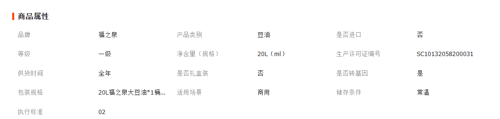 中粮 20L福之泉大豆油 一级大豆油 餐饮专用油