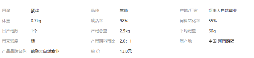 料蛋比(kg料/kg蛋) | 2.05:1 |