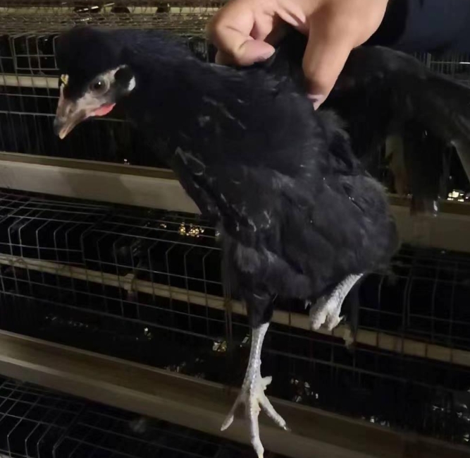 峪口禽业的京粉8号青年鸡,俗称黑凤蛋鸡,高峰蛋率96%。