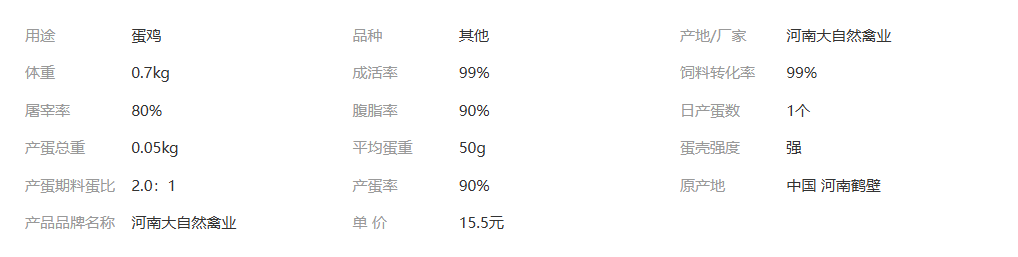 尤其是去年上市的京粉8号青年鸡,实破了土鸡产蛋低,开产迟,高峰持续时间短,易掉毛,养殖时间短的这些缺点;峪口的粉8,俗称黑凤,开产早,高峰产蛋可达96%蛋率,90%以上可维持2至3个月,400天左右还能保持80%蛋率,蛋壳厚,蛋色均匀红润,蛋价高,仅次于绿壳蛋,淘汰鸡体重重,价格高,论斤价仅次于纯土鸡,饲养时间长可达600天,养殖低,投入小利润却可翻番,是广大养殖户的印钞鸡京粉8号蛋鸡青年鸡