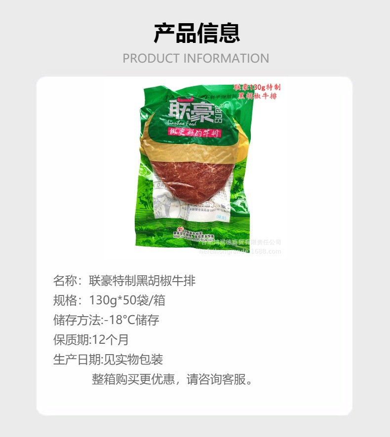 portant; font-family: inherit; font-size: 16px; color: rgb(63, 81, 181);">2.本品联豪130g特制黑胡椒牛排品质好,适合家庭牛排、西餐牛排店、咖啡店、中高档西餐厅等客户,量大更优惠,需要量大下单请联系客服。