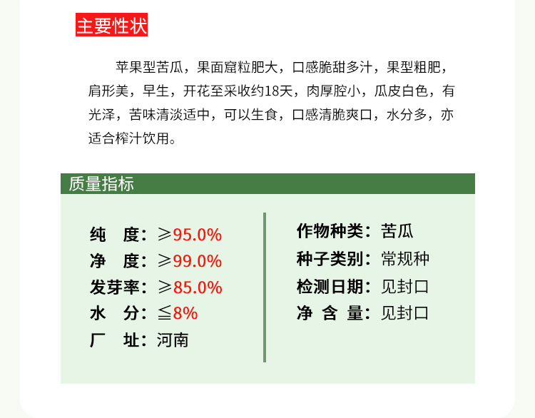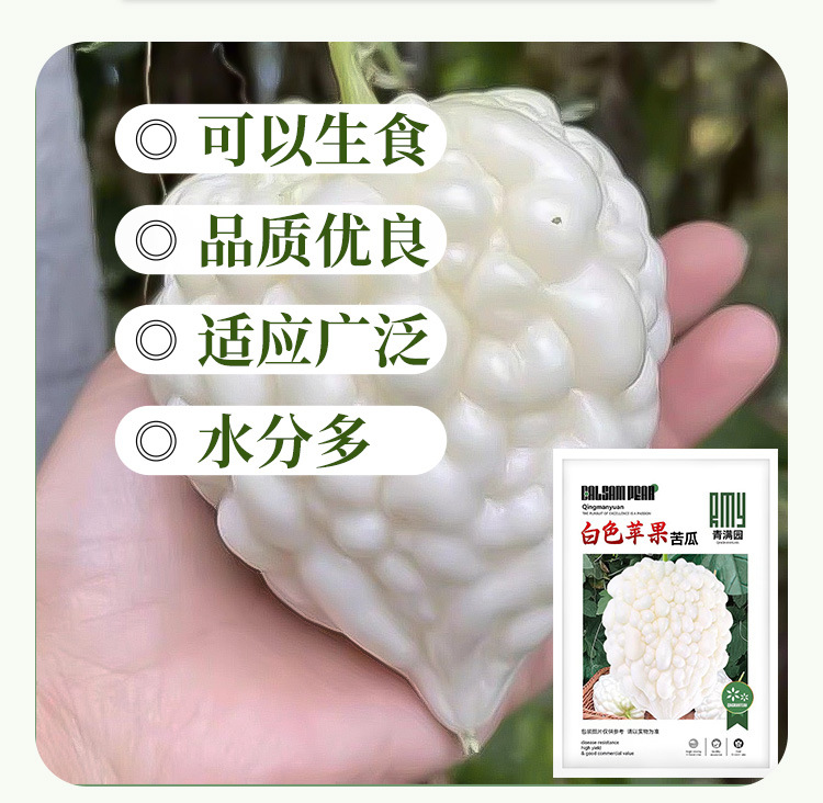 批发白色苹果苦瓜种子厚肉白皮苦瓜甜脆爽口可生吃农田菜园