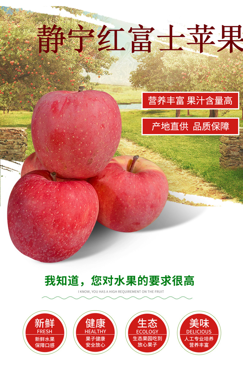 果园采摘产地直供甘肃静宁红富士苹果水果5-10斤10-12枚现货批发