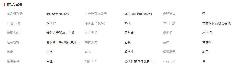 吉香居麻辣酱358g瓶装四川辣酱辣椒酱油辣椒炒菜凉拌家用一件代发