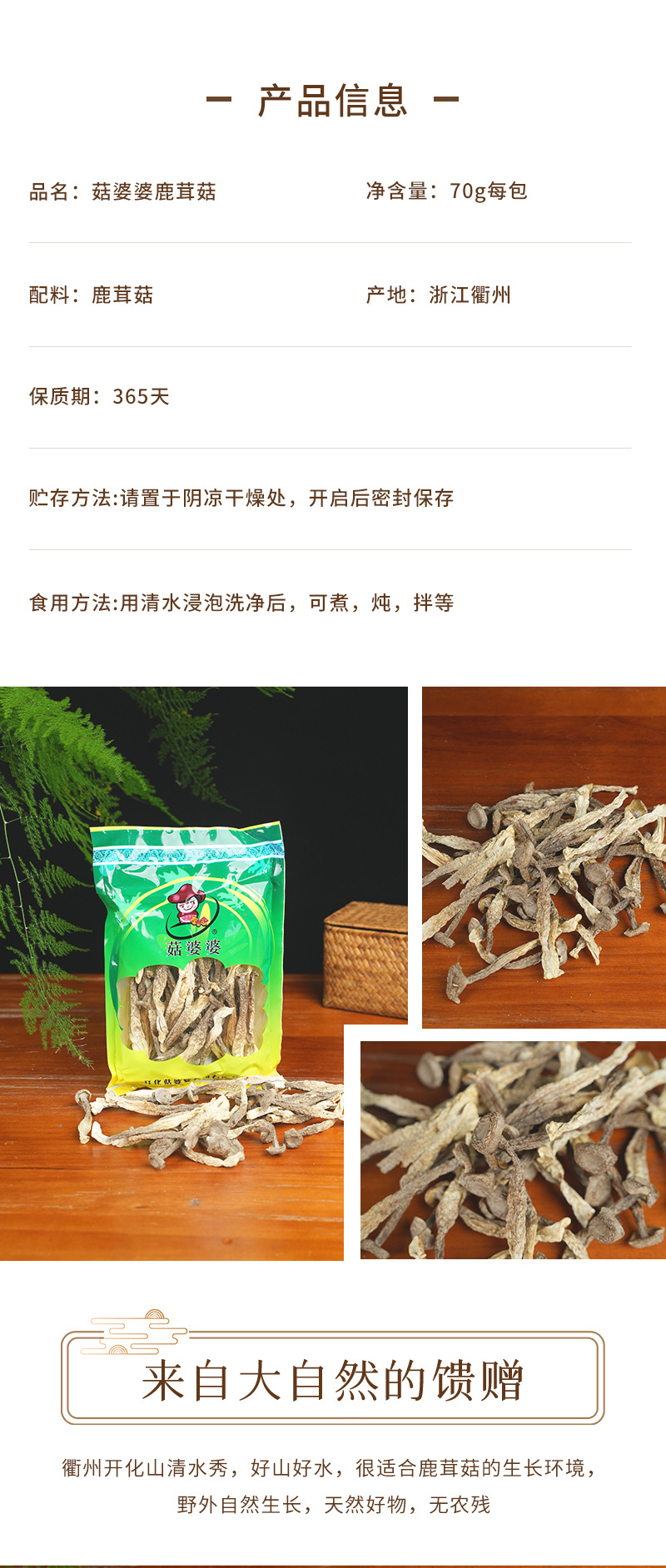 鹿茸菌厂家生产基地批发无熏硫食用菌酒店精选食材干货70g鹿茸菇