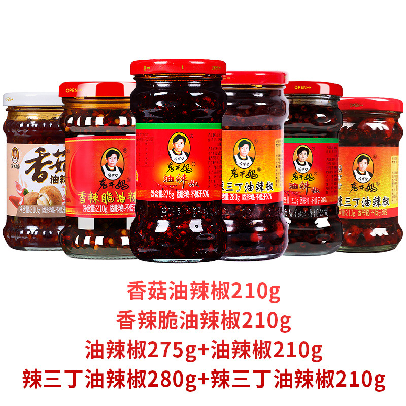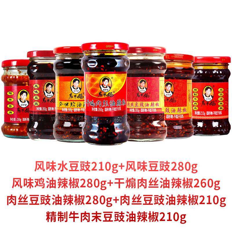 上海梅林午餐肉罐头; 天台天和油腐乳; 老干妈香辣菜; 老干妈风味鸡油辣椒; 老干妈...