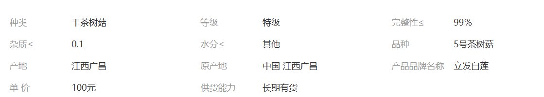 茶树菇原为江西广昌境内高山密林地区茶树蔸部生长的一种野生蕈菌。是集高蛋白,低脂肪,低糖分,保健食疗于一身的*无公害保健食用菌。经过优化改良的茶树菇,盖嫩柄脆,味纯清香,口感*,可烹制成各种美味佳肴,其营养价值超过香菇等其他食用菌,属高档食用菌类。