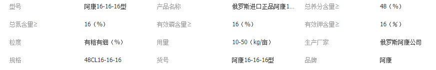 俄罗斯进口正品AKANG阿康16-16-16低氯平衡型48%总养分复合肥料