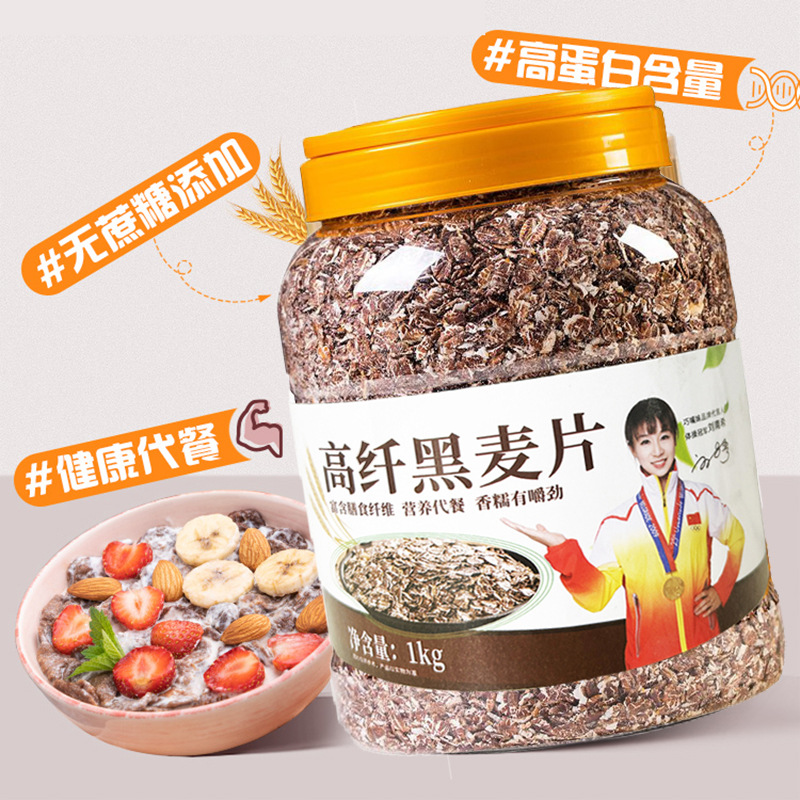 高纤维即食黑麦片原味早餐冲饮麦片无糖无脱脂健身代餐食品